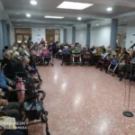 Sebastián interpretó un repertorio variado que invitó tanto a la escucha emocionada como al baile. Muchos de nuestros mayores participaron activamente, algunos cantando, otros marcando el ritmo con palmas y varios animándose a bailar, generando un ambiente de auténtica fiesta.