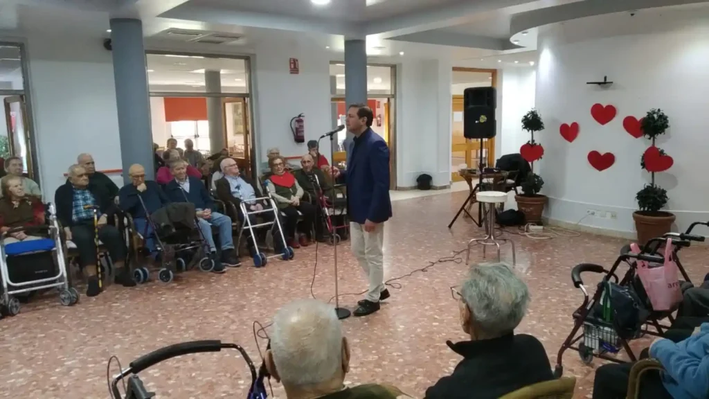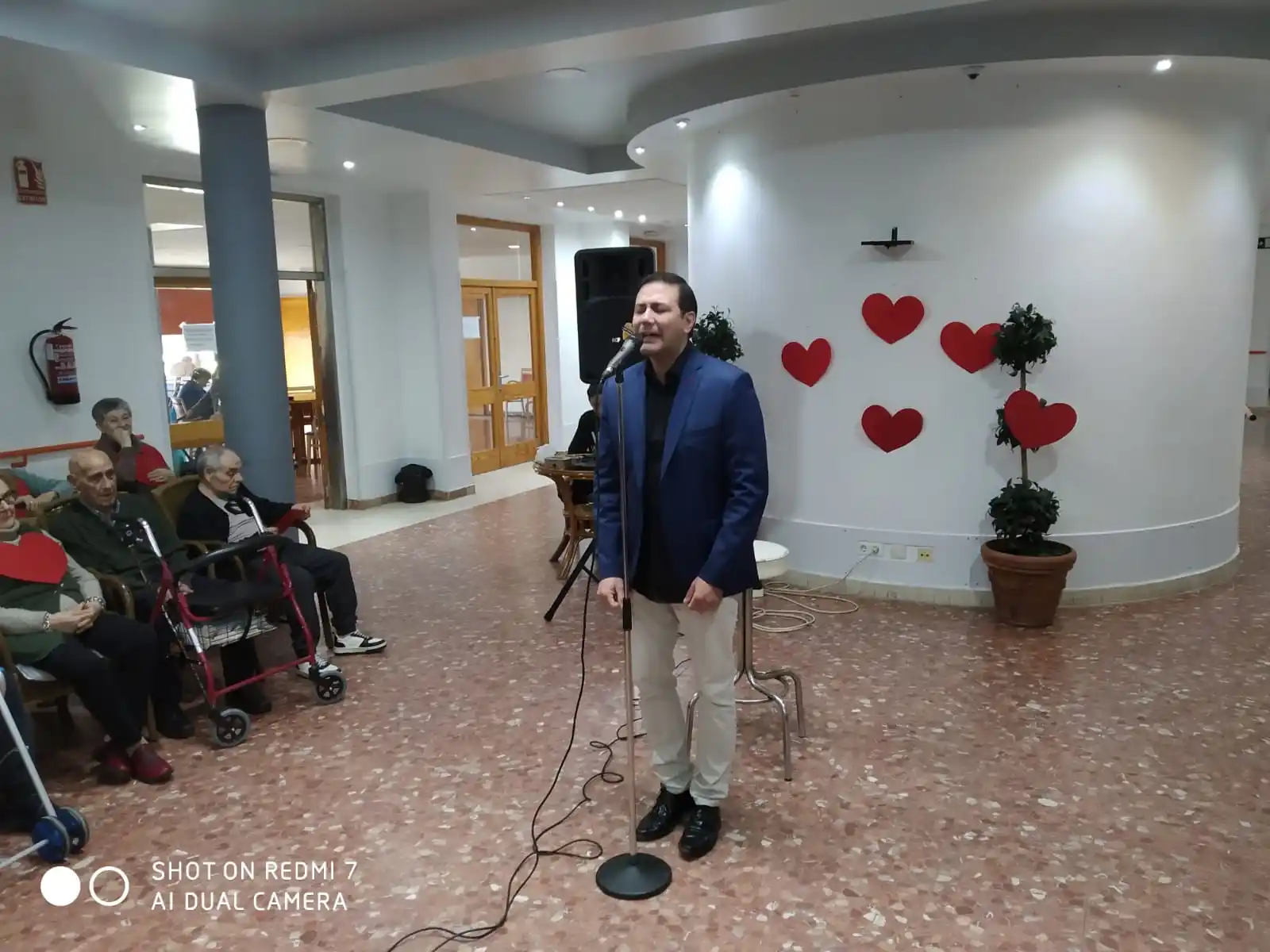 El acto tuvo lugar en el salón principal del centro, decorado especialmente para la ocasión con corazones y motivos alusivos al amor y la amistad. Residentes y profesionales compartieron una tarde diferente, donde la música fue la gran protagonista.