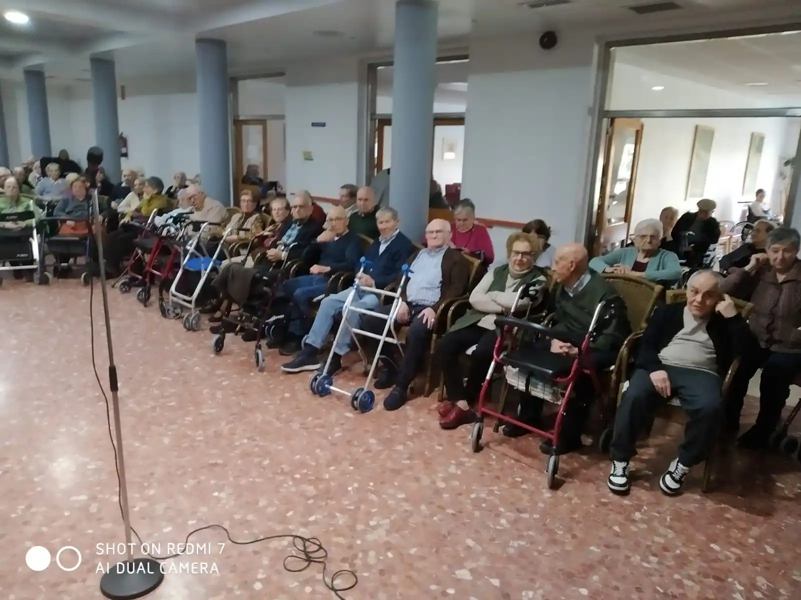 Sebastián interpretó un repertorio variado que invitó tanto a la escucha emocionada como al baile. Muchos de nuestros mayores participaron activamente, algunos cantando, otros marcando el ritmo con palmas y varios animándose a bailar, generando un ambiente de auténtica fiesta.