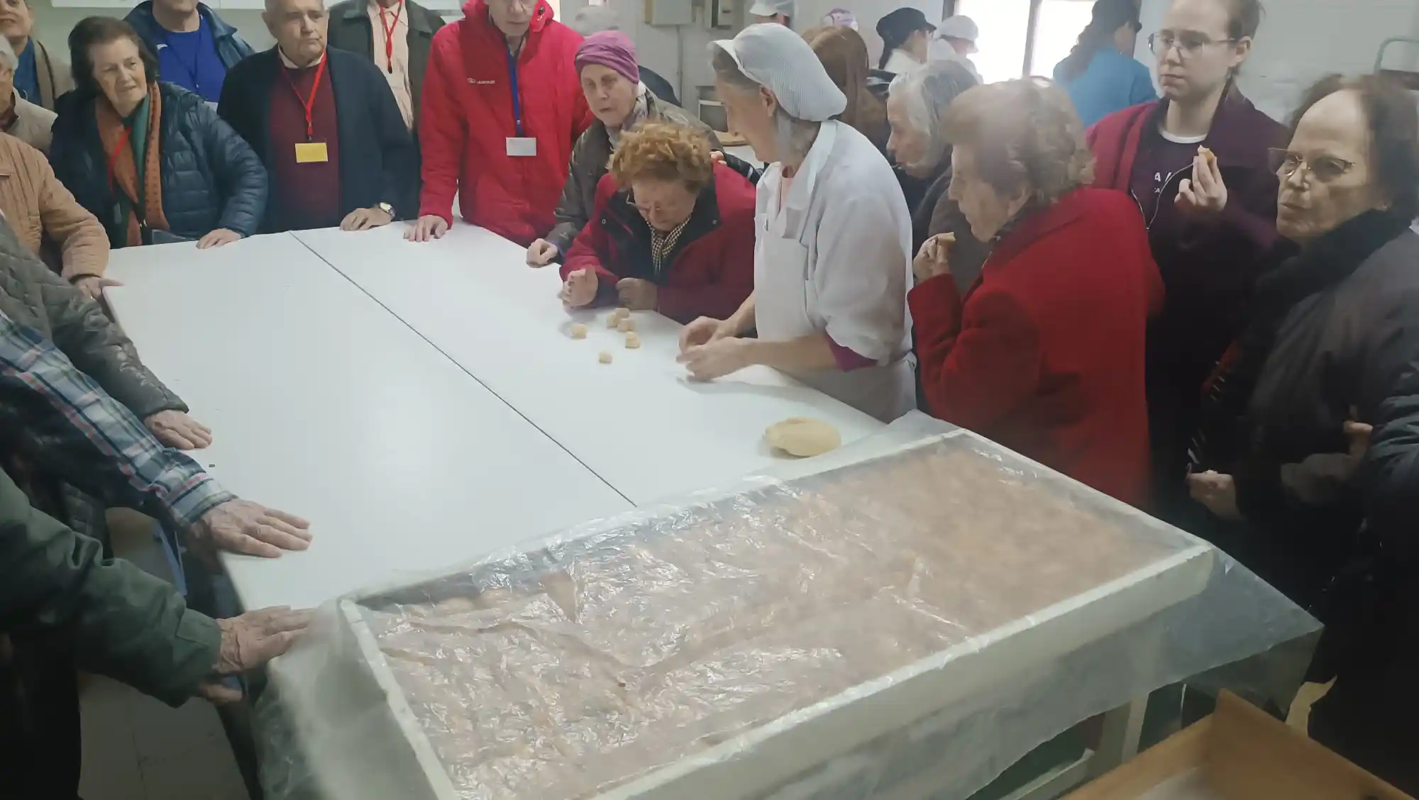 Durante la visita, los residentes pudieron observar cómo se elabora el mazapán de forma artesanal, siguiendo métodos tradicionales que se han transmitido de generación en generación. Ver el proceso de primera mano despertó la curiosidad de los participantes y dio lugar a numerosas conversaciones y recuerdos relacionados con la cocina, las fiestas y las celebraciones familiares.